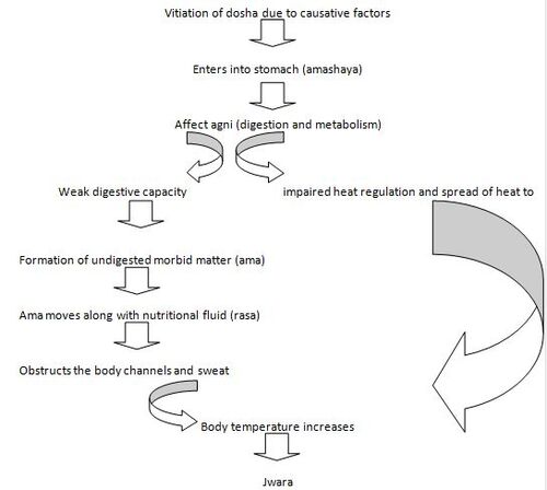 Keywords: Jwara, fever, roga, rise in body temperature, hyperpyrexia, infectious disease, noninfectious diseases in Ayurveda.