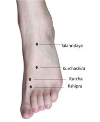 2 | Talahridaya | In the foot just proximal to second toe. | Severe pain & death | Long planter ligament |