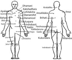 - ↑ 2.0 2.1 Vineeta Negi: Marma & marma Therapy: A Review, Article in World Journal of Pharmaceutical Research · August 2018 DOI: 10.20959/wjpr201815-12973 https://www.researchgate.net/publication/326826604_Marma_and_Marma_Therapy_A_Review